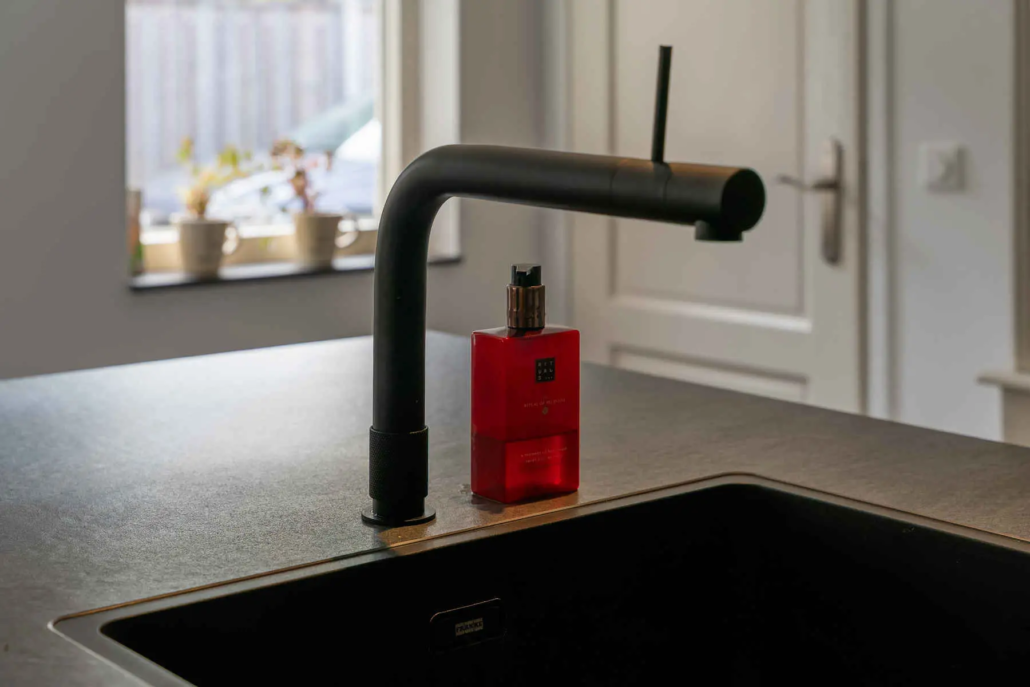 De keuken is uitgerust met moderne apparatuur, waaronder een Bora-kookplaat en een Quooker, absoluut”, vertelt Cees. “Het koken gaat sneller en alles werkt heel fijn.”